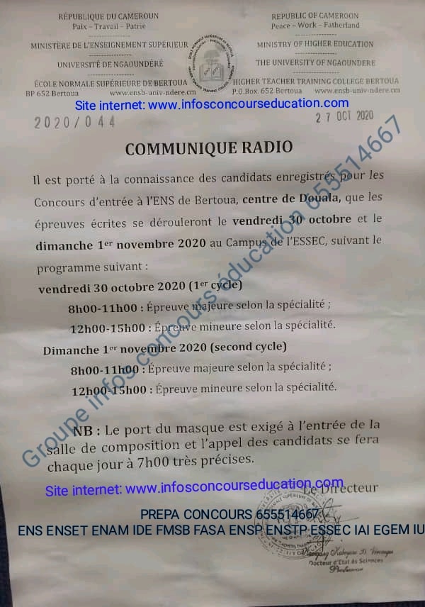 HomeConcoursConcours ens de bertoua 2020 centre de composition