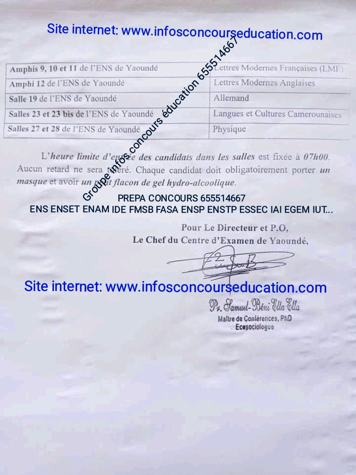 Répartition des salles des candidats au concours d’entrée à l’école normale supérieure  (ens) de bertoua premier cycle