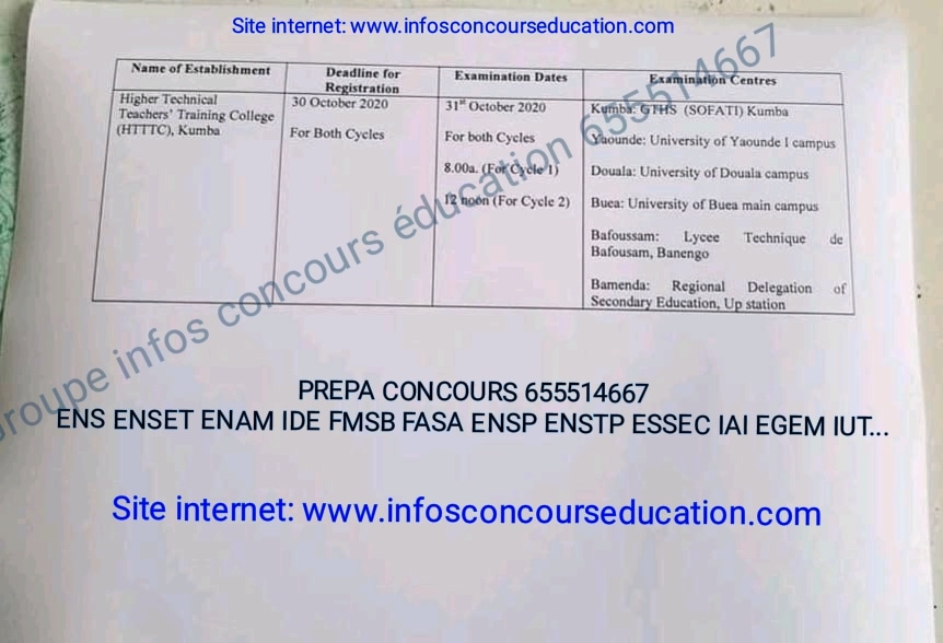 Centre de composition des candidats aux concours d’entrée à l’école normale supérieure d’enseignement technique (ENSET) de kumba session 2020