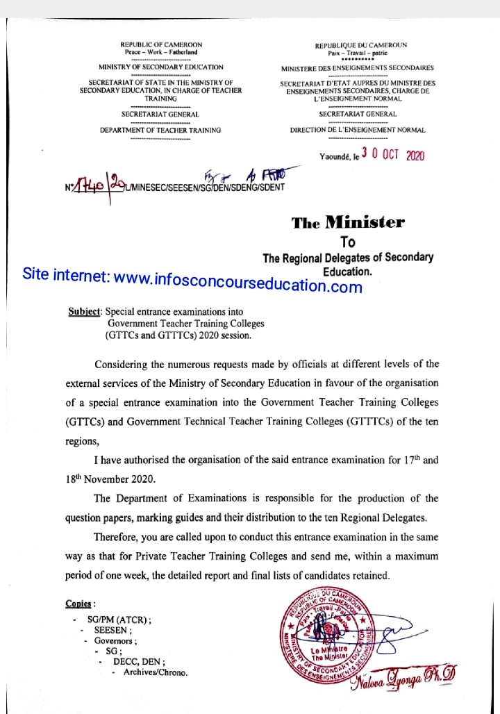 HomeConcoursConcours spécial d'entrée dans les écoles normales publiques d'instituteurs (enieg, eniet), session... Concours Concours spécial d’entrée dans les écoles normales publiques d’instituteurs (enieg, eniet), session 2020 2 November 2020 0 223 Publié par Le Bénévole Share FacebookTwitterPinterestWhatsApp Concours spécial d’entrée dans les écoles normales publiques d’instituteurs (enieg, eniet), session 2020 [wpforms id=”1772″] LEAVE A REPLY Cancel reply Comment: Please enter your comment! Name:* Please enter your name here Email:* You have entered an incorrect email address! Please enter your email address here Website: Save my name, email, and website in this browser for the next time I comment. Δ Share FacebookTwitterPinterestWhatsApp Previous articleConcours spécial enieg 2020Next articleConcours ENSPM (école nationale supérieure polytechnique de maroua )2020 lieu de composition des candidats Le Bénévole ARTICLES SIMILAIRES Concours Arrêté Concours d’entrée à L’IFCPA-CRTV 2025 30 September 2025 Concours Concours de recrutement CAMRAIL 2025 : 20 Aide -conducteurs 30 September 2025 Concours Ouverture concours FSJP de Bertoua 2025/ 24 September 2025 POPULAIRES EN CE MOMENT Arrêté Concours d’entrée à L’IFCPA-CRTV 2025 30 September 2025 Concours de recrutement CAMRAIL 2025 : 20 Aide -conducteurs 30 September 2025 Ouverture concours FSJP de Bertoua 2025/ 24 September 2025 Arrêté Concours ENAM CEMAC 2025 22 September 2025 Arrêté concours Nasla 2025 19 September 2025 Concours EMIA 2025 Ecole Militaire Interarmées 19 September 2025 Concours recrutement militaire MINDEF 2025 19 September 2025 Concours Gendarmerie Camerounaise MINDEF 2025 19 September 2025 Load more