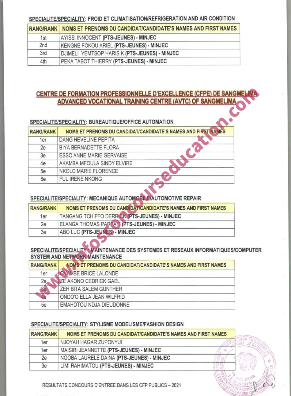 Portant admission dans les centres de formation professionnelle d'excellence (CFPE) de Douala, limbé et sangmelima au titre de l'année de formation 2021 Portant admission dans les centres de formation professionnelle d'excellence (CFPE) de Douala, limbé et sangmelima au titre de l'année de formation 2021 Portant admission dans les centres de formation professionnelle d'excellence (CFPE) de Douala, limbé et sangmelima au titre de l'année de formation 2021 Portant admission dans les centres de formation professionnelle d'excellence (CFPE) de Douala, limbé et sangmelima au titre de l'année de formation 2021 Portant admission dans les centres de formation professionnelle d'excellence (CFPE) de Douala, limbé et sangmelima au titre de l'année de formation 2021 Portant admission dans les centres de formation professionnelle d'excellence (CFPE) de Douala, limbé et sangmelima au titre de l'année de formation 2021